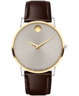 Movado Mens Museum Classic Swiss Quartz Brown Leather Watch 40mm