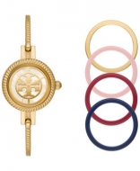 Tory Burch Womens Reva Gold Tone Stainless Steel Bangle Bracelet Watch 27mm Gift Set