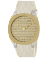 Gucci Womens Swiss 25H White Leather Strap Watch 34mm