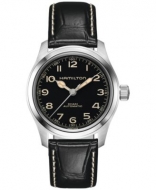 Hamilton Mens Swiss Automatic Khaki Field Murph Black Leather Strap Watch 42mm