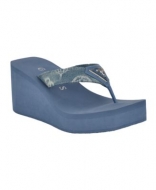 GUESS Womens Demmey Logo Thong Square Toe Wedge Sandals