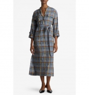 St John Collection St. John Collection Check Belted Seersucker Midi Shirtdress_Tahoe Slat…