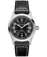 Hamilton Mens Swiss Automatic Khaki Field Black Leather Strap Watch 38mm