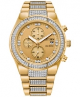 Citizen Eco Drive Mens Chronograph Crystal Gold Tone Stainless Steel Bracelet Watch 42mm …
