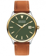 Movado Mens Swiss Calendoplan Cognac Brown Leather Strap Watch 40mm