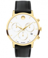 Movado Mens Museum Classic Swiss Quartz Chrono Black Leather Watch 42mm