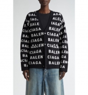 Balenciaga Logo Jacquard Wool Blend V-Neck Cardigan_Black/ White