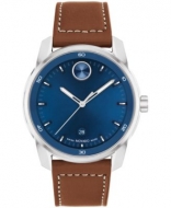 Movado Mens Bold Verso Swiss Quartz Cognac Leather Strap Watch 42mm
