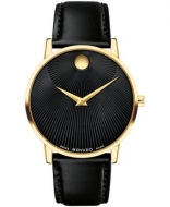 Movado Mens Museum Classic Swiss Quartz Black Leather Watch 40mm