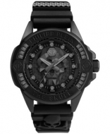 Philipp Plein Mens The $kull Black Silicone Strap Watch 41mm