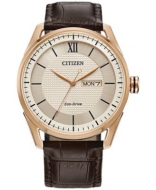 Citizen Eco Drive Mens Brown Leather Strap Watch 42mm