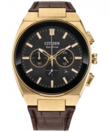 Citizen Eco Drive Mens Chronograph Modern Brown Leather Strap Watch 43mm