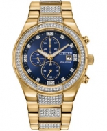Citizen Mens Chronograph Eco Drive Crystal Gold Tone Stainless Steel Bracelet Watch 42mm