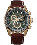 Citizen Eco Drive Mens Chronograph PCAT Brown Leather Strap Watch 43mm