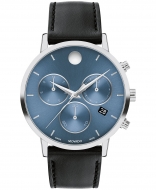 Movado Mens Museum Classic Swiss Quartz Chrono Black Leather Watch 42mm