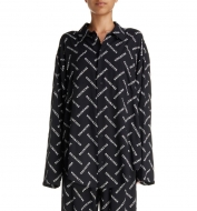 Balenciaga Relaxed Fit Logo Print Button-Up Shirt_Black/ White