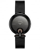 Tory Burch Womens The Pierced Black Leather Strap Watch 36mm