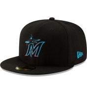 New Era Mens New Era Miami Marlins Black On-Field Authentic Collection 59FIFTY Fitted Hat…