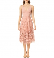 Dress the Population Darleen V-Neck Embroidered Mesh Cocktail Dress_Blush