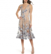 Dress the Population Audrey Embroidered Fit & Flare Dress_Steel