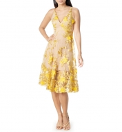 Dress the Population Audrey Embroidered Fit & Flare Dress_Canary