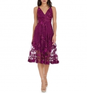 Dress the Population Audrey Embroidered Fit & Flare Dress_Dark Magenta