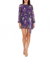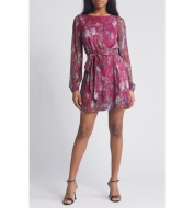 Dress the Population Kirsi Metallic Floral Long Sleeve Minidress_Fuchsia Multi