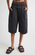 Alexander Wang Pre-Styled Pleated Denim Shorts with Chain Belt_Faded Black