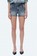 Bayeas Nova Raw Hem Mid Rise Denim Shorts_Rock Indigo
