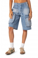 EDIKTED Rex Denim Cargo Bermuda Shorts_Blue-Washed