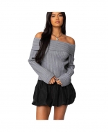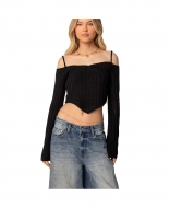 Edikted Womens Triangle Hem Off Shoulder Sweater