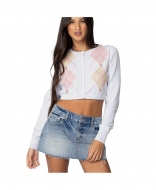 Edikted Womens Francis Cropped Argyle Knit Cardigan
