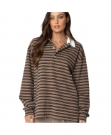 Edikted Womens Meggy Striped Zip Up Hoodie