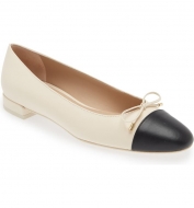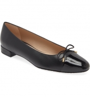 Stuart Weitzman Sleek Cap Toe Bow Flat_Black/ Silver Leather