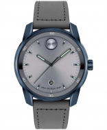 Movado Mens Bold Verso Swiss Quartz Gray Leather Watch 42mm