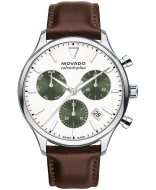 Movado Mens Calendoplan Swiss Quartz Chrono Chocolate Leather Watch 43mm
