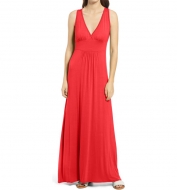 Loveappella V-Neck Jersey Maxi Dress_Red Lipstick