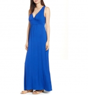 Loveappella V-Neck Jersey Maxi Dress_Blue Maze