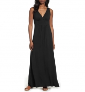 Loveappella V-Neck Jersey Maxi Dress_Black