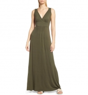 Loveappella V-Neck Jersey Maxi Dress_Olive