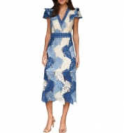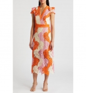 Adelyn Rae Adeline Palm Lace Midi Dress_Red/ Pink