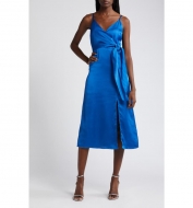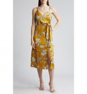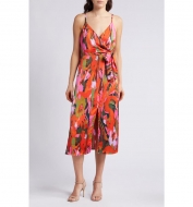 Chelsea28 Side Tie Satin Dress_Red Multi Canvased Blooms