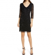 Pisarro Nights Beaded V-Neck Cocktail Dress_Black