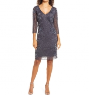 Pisarro Nights Beaded V-Neck Cocktail Dress_Silver