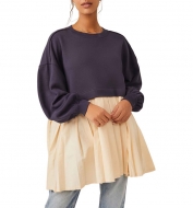 Free People Eleanor Layered Sweatshirt Minidress_Grey Combo