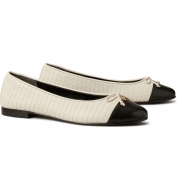 Tory Burch Quilted Cap Toe Ballet Flat_Light Cream / Perfect Black