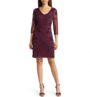 Pisarro Nights Beaded V-Neck Cocktail Dress_Wine