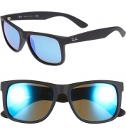 Ray-Ban Justin 54mm Rectangular Sunglasses_Black/ Green Mirror/ Blue
