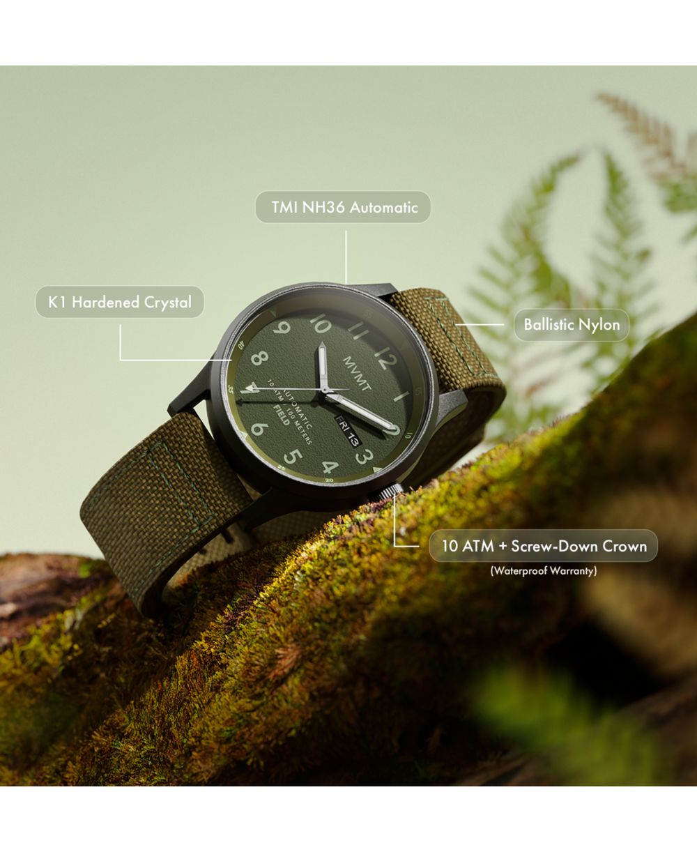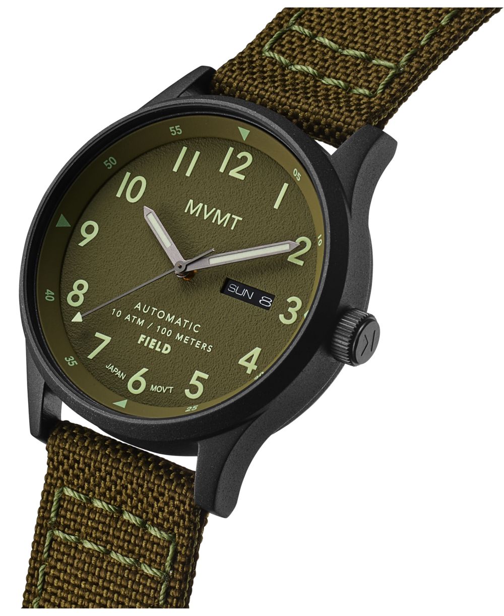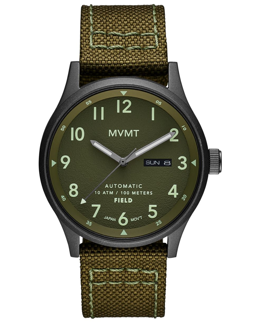 MVMT Mens Field Automatic Green Canvas Strap Watch 42mm