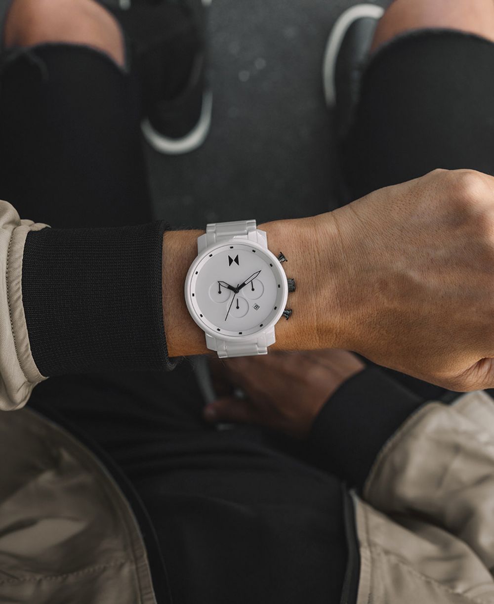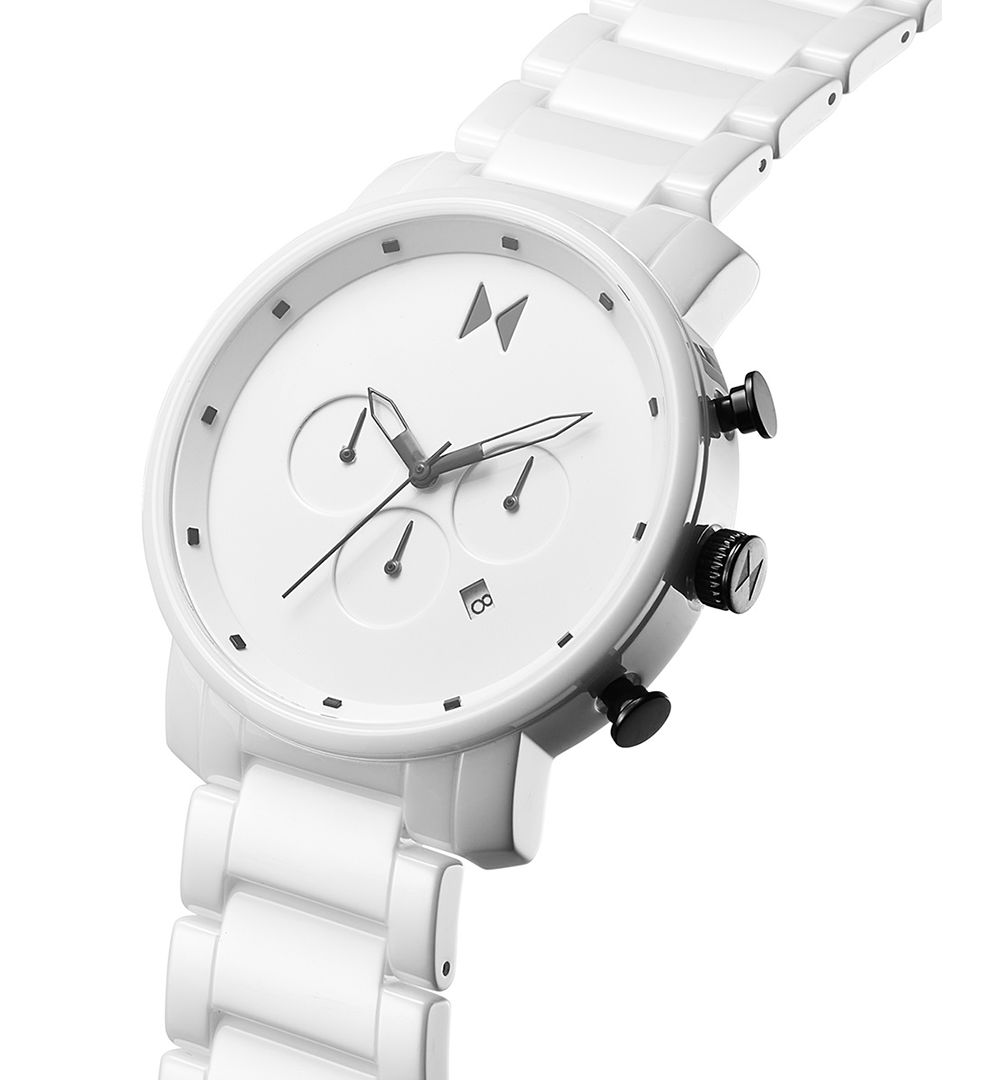 MVMT Chrono White Ceramic Bracelet Watch 45mm